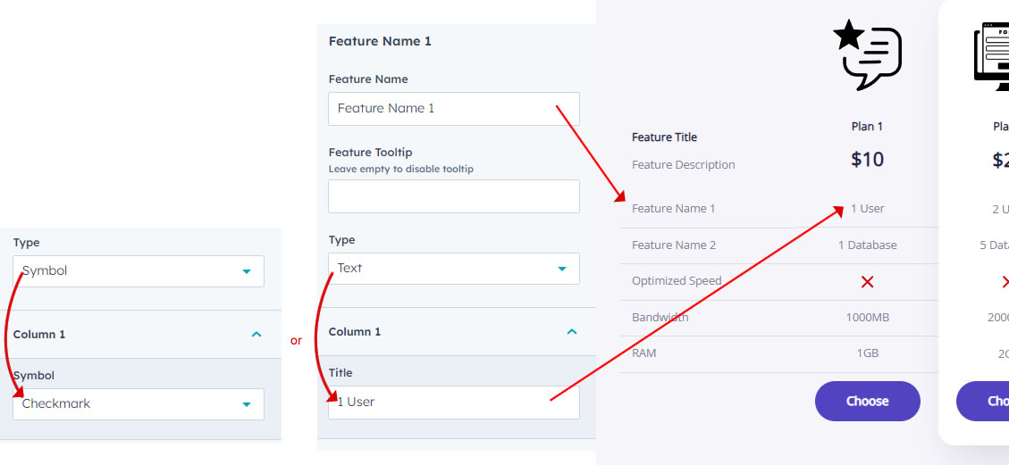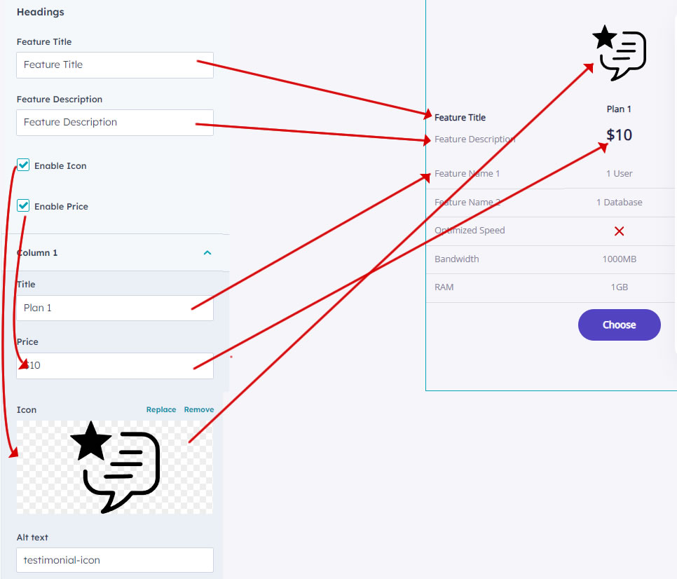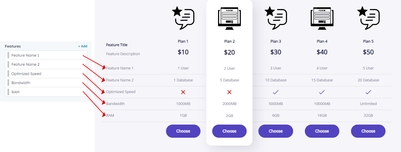 - Feature Breakdown: Use the module to list and detail the features included in each plan. Whether it's a software package, a subscription service, or a product bundle, customers can see at a glance what they'll be getting with each option.