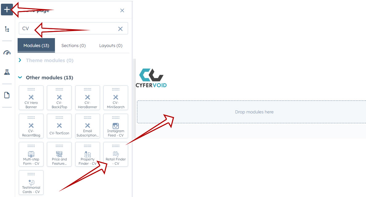 After installing the module, you're ready to integrate it into your HubSpot pages. Our module carries the postfix "CV" to distinguish it from similar modules, allowing you to filter those that originate from us.