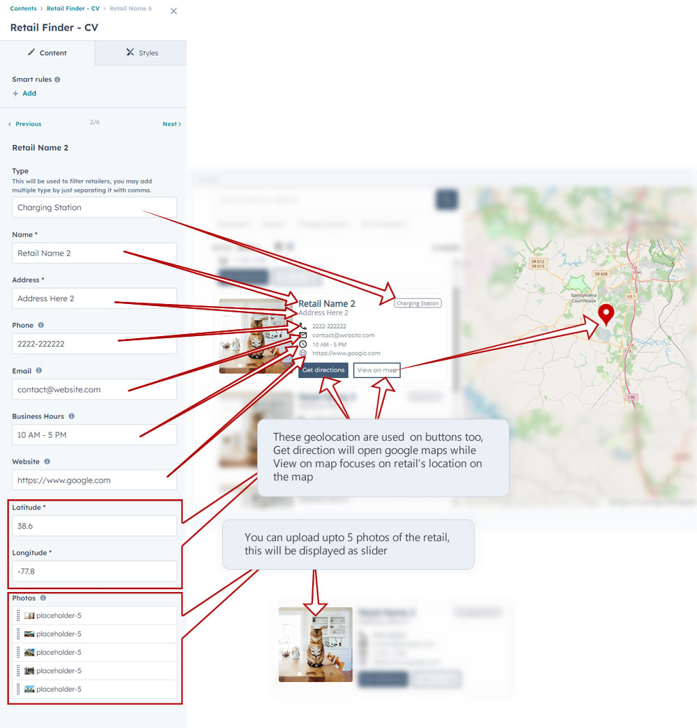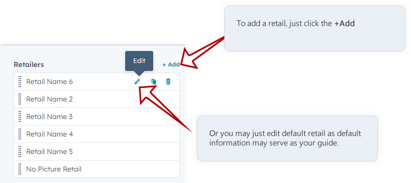Adding retail are very straightforward, image below shows where each fields are being shown and used.